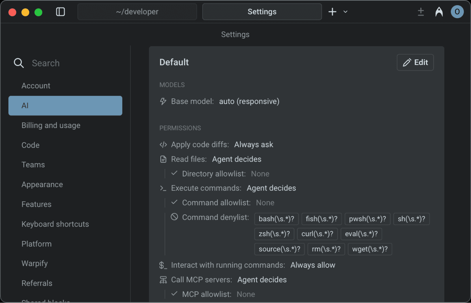Warp is the best option for agentic development. Unlike CLI-apps or AI IDEs, it’s designed from the ground up for prompt-driven development and you can feel the difference in every development task you start with it.