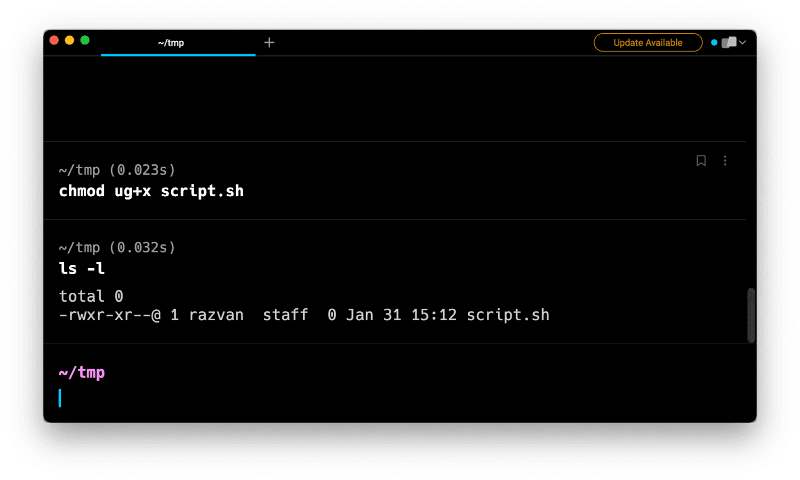 Note that in this last case, executing chmod a+x has the same effect as chmod +x.