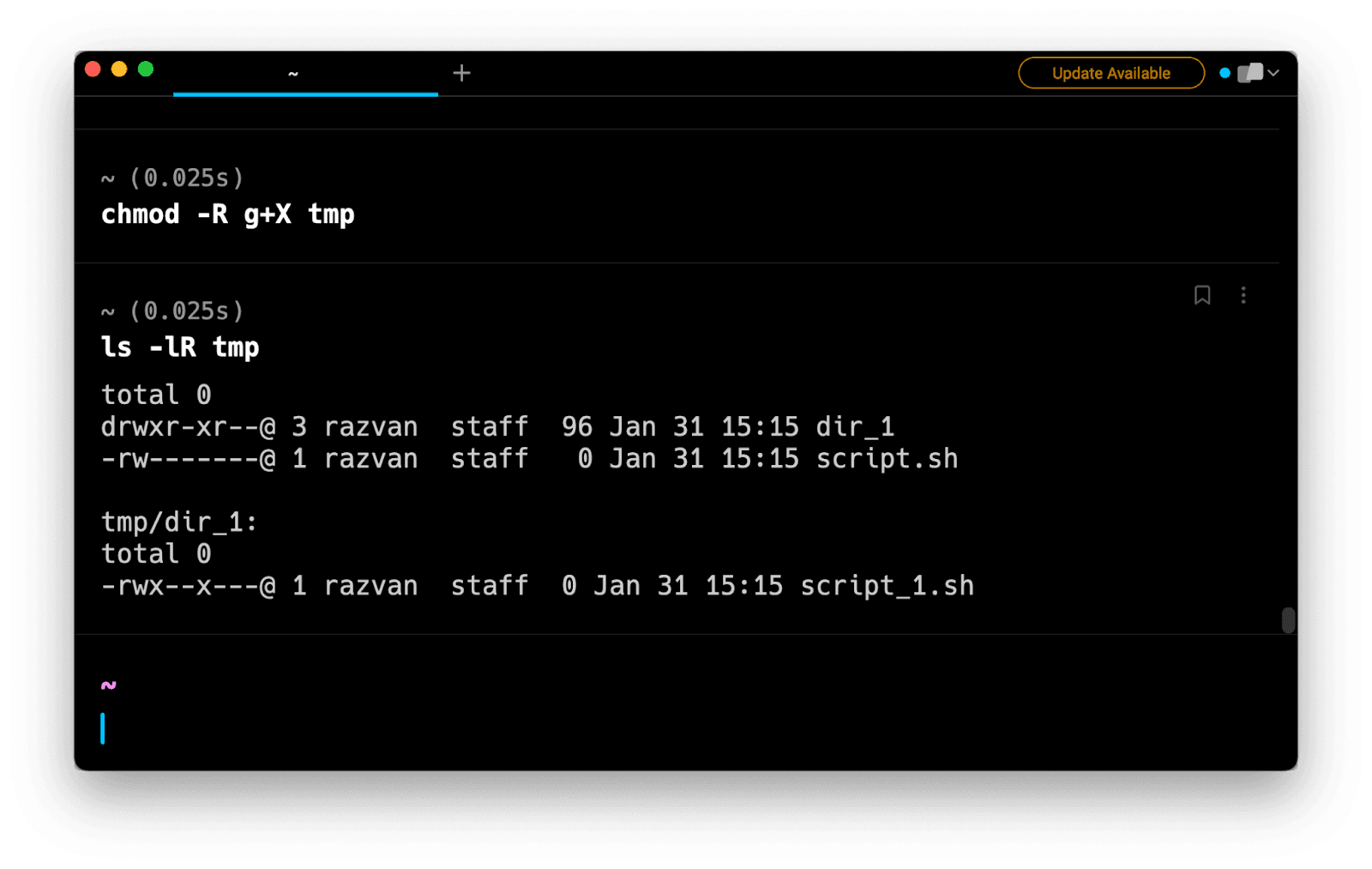 Understand how to use chmod to change the permissions of files and directories. See examples with various chmod options.