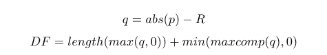 Where p is the vector of the pixel, and R is the vector of the rectangle corner. Check out Inigo Quilez’s derivation of the distance field function here.