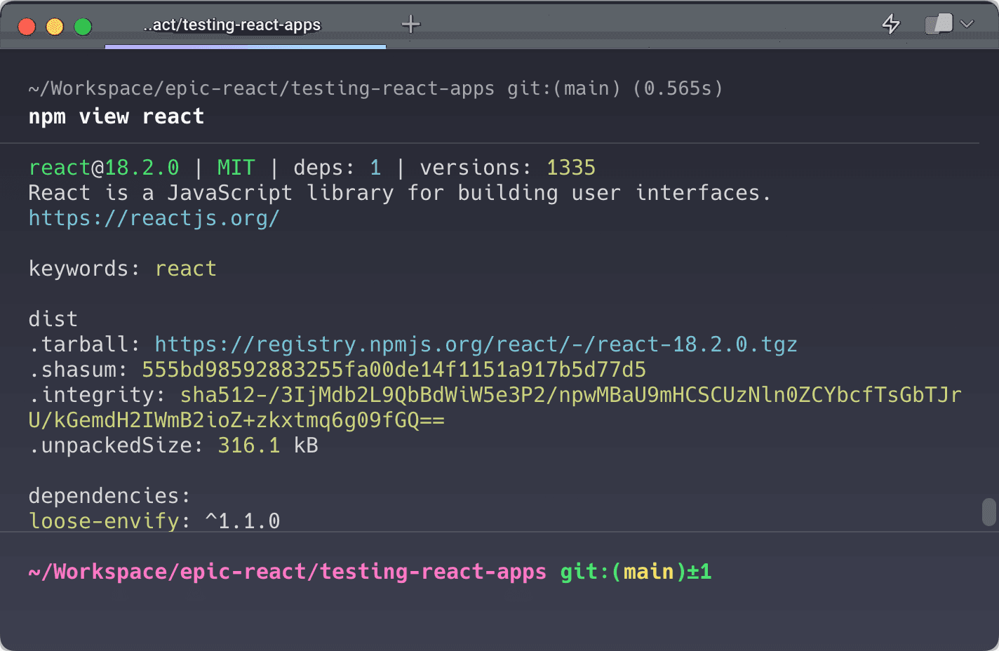 Many developers tend to rely on the package.json file to determine the version of an installed package. We would recommend using the commands listed above instead. The package.json file is used to map the package to a version range and note the project’s requirements. The node_modules folder contains the installed version of the package and represents the exact version of the code that has been downloaded.